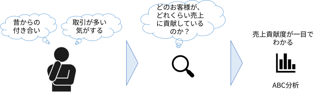 ABC分析とは、売上や利益のデータをもとに「どの顧客(あるいは商品)が会社にとってどれだけ重要か」を分類する方法です。